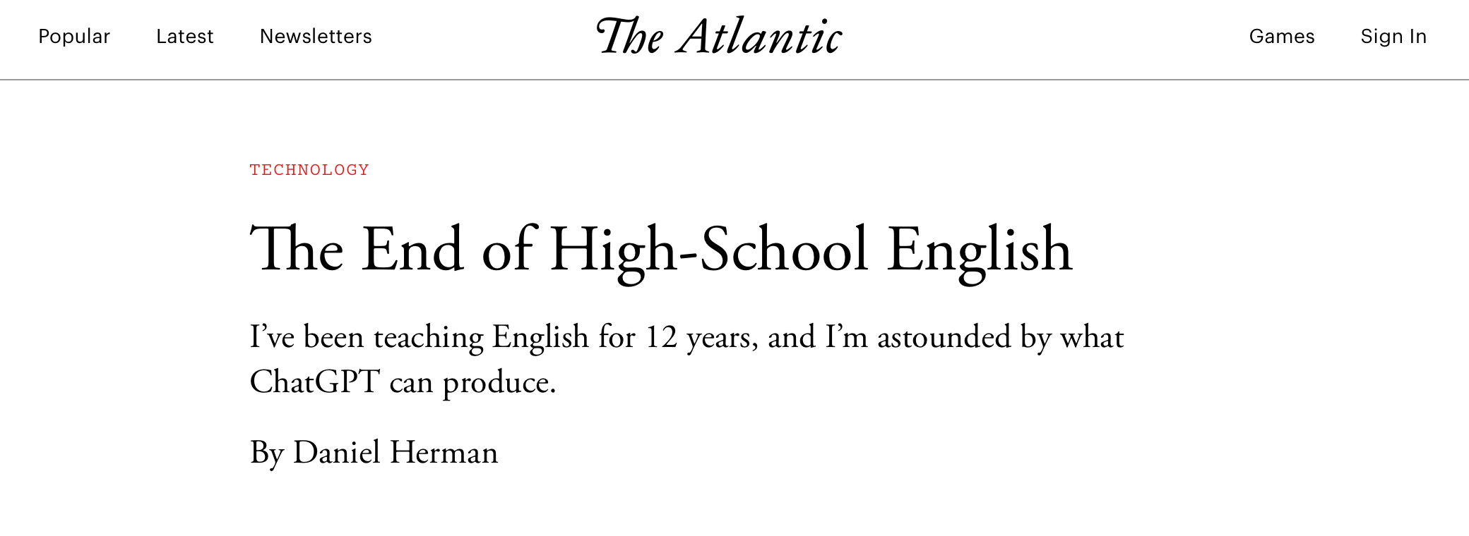 When I was in graduate school, one of my professors shared an article called “The End of High School English.” The ominous report details the emergence of ChatGPT and the threat it poses to classrooms. The author’s greatest fear is that ChatGPT could make students question whether writing is worth doing. To me, that question also becomes, is it worth it to develop your own voice?